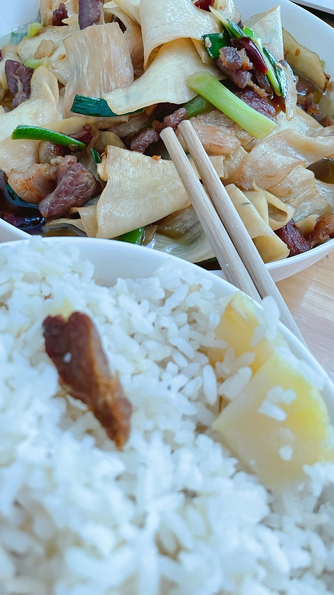 今年的腊肉做的特别好吃,加上蒜苗和辣椒的加持,妥妥下饭神器