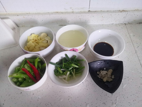 姜丝兔(精进版):一、备料。?1.备兔。早上去菜市买一只两斤多一点(不超过两斤半)的鲜兔。拿回家洗净晾干(也可以用厨房纸把水吸干。把兔切成小块(兔油留取备用)。用盐和胡椒粉腌制15分钟。裹红薯粉。?2.备菜:二荆条切小段,洋葱切小块。芹菜水煮断生。姜丝、蒜瓣儿、干辣椒段、花椒、葱段。?3.备其余佐料:老抽,生抽,白糖,醋,料酒,黑胡椒粉,味精。二、烹制。1.放三种混合油入锅:菜油、猪油、兔油。2.