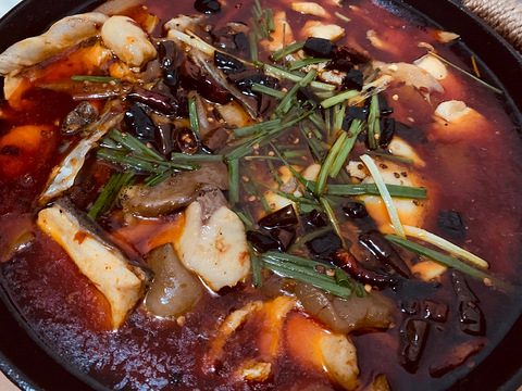 哈哈,直接端锅儿上桌子了! 忘了买鱼作料,我屋头是常备火锅底料的,就用火锅底料煮的,味道我觉得比鱼作料煮出来还好吃! 果然火锅底料是百搭的哈哈!