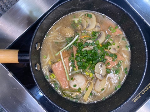 汤汁浓郁的鲜菇菌午餐肉米线,一口米线一口汤,巴适得很