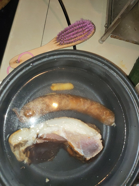 春节回深圳,从家里带的腊肉和腊肠。洗了走,又不香。带过来现洗钢丝球掉屑屑,会卡在肉里,思索良久,突然两眼放光,灵机一动。把上次为了洗小龙虾买的一个鞋刷,拿来刷腊肉[ej=1F602][ej=1F602] 没用过,还好没拿来刷过鞋 ,本来是想着以后继续洗小龙虾,这下子开发了它的一个新用法[ej=1F61D][ej=1F61D][ej=1F61C][ej=1F61C][ej=270C][ej=270C