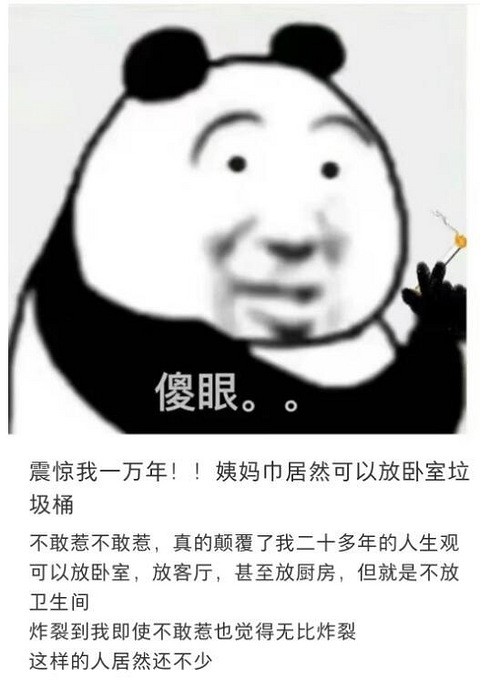 才知道很多人会把用过的卫生巾扔卧室垃圾桶,甚至厨房垃圾桶,但是不扔厕所的垃圾桶!我以为全天下人民都是扔厕所垃圾桶的
