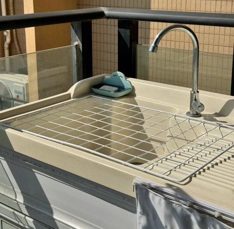 以前看到网格片,只觉得他应该很好用,但是不知道到底可以怎么用!直到看到有个博主推荐的,我立马下单了 用一片:阳台洗手池处的阳光超级充足,所以直接在上面放了一个网格片,可以晾晒鞋子袜子,水直接滴到洗手池,不会弄脏阳台。