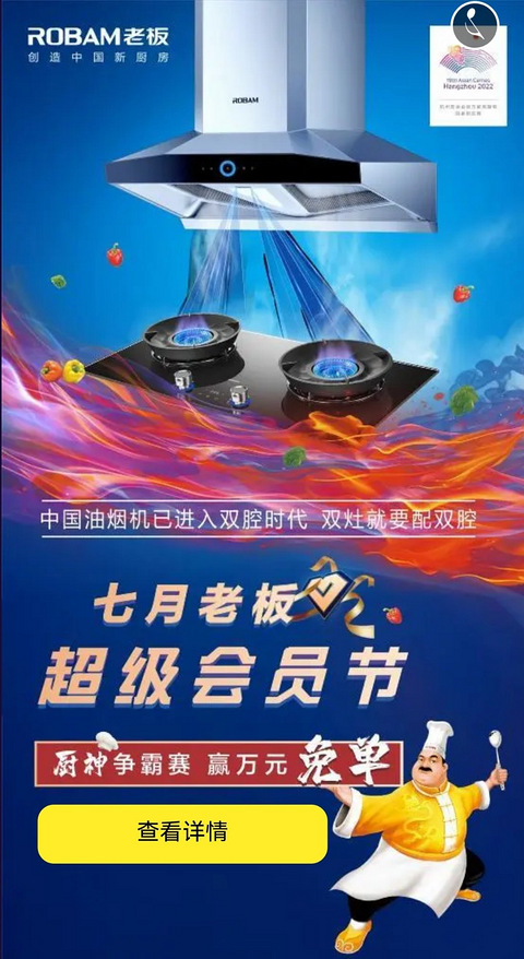 老板电器7月超级会员节,购物狂网友专享福利来啦!