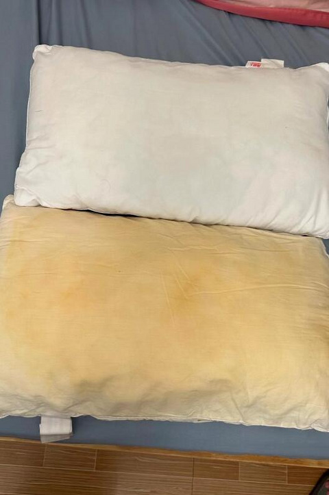 刚刚在网上看的,真的绷不住了。以前都是老婆吐槽老公的枕头发黄,结果这个老公自己都看不下去了,因为这差距真的太明显了。同一天买的枕头,就能这么离谱。