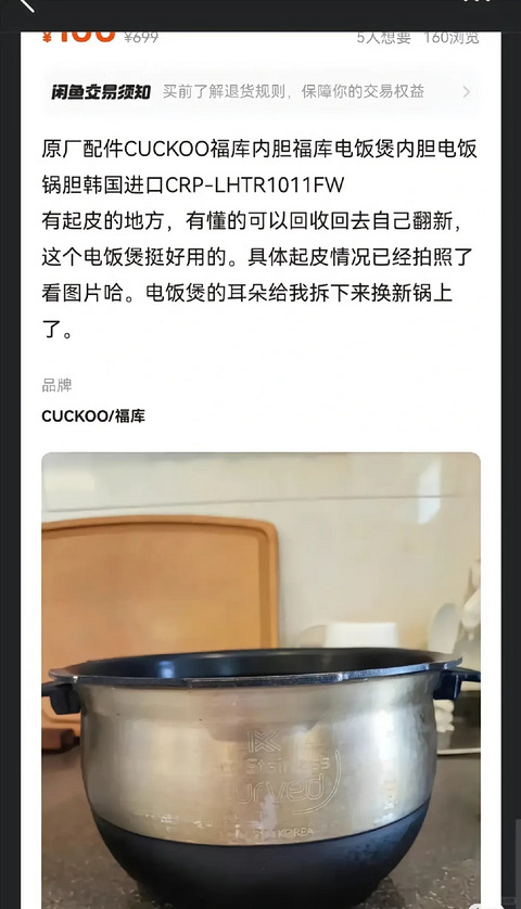 围观麦琳在闲鱼上,卖福库电饭锅内胆,旧马桶