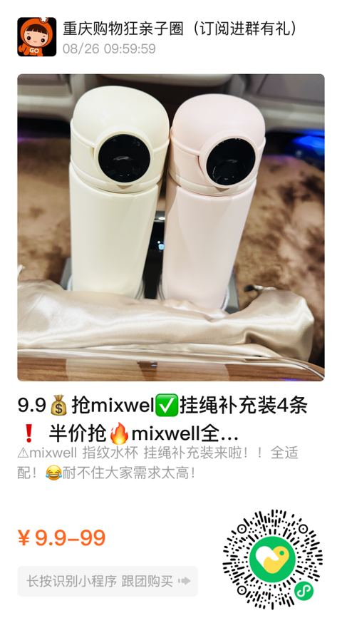 9.9抢mixwel√挂绳补充装4条! 半价抢mixwell全网独家!高端学生专用指纹保温杯 △原团购价199,半价到手99