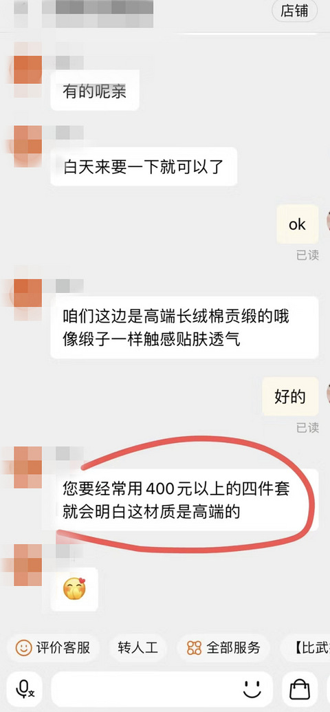 被淘宝客服弯酸了,四件套用400元以上才能懂什么是高端材质?