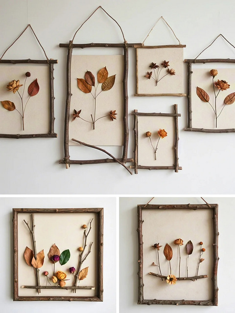 捡些树枝树叶做个装饰画吧