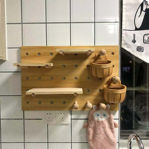 两个菜篮篮是我准备放蒜瓣姜块用的,感觉特别可爱,洞洞板实用性比较高,颜值也超高的