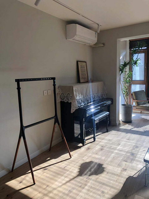 电视的处理方法似乎从来没有太多惊喜,无非两种:1、电视柜,2、挂墙。但,一直以为电视柜好看的极少,且除了摆电视外收纳功能极其有限,电视柜还蛮占地儿,挂墙又不太灵活。直到看到三星画境电视,外观惊艳的同时发现这种落地式支架又灵活又省空间。碍于装修到最后的山穷水尽、且电视使用率在我家实在不高不想投入过高预算,突发奇想某宝上搜索电视支架,发现了真有颜值很高的支架,搭配性价比极高的小米电视,完美解决需求。平