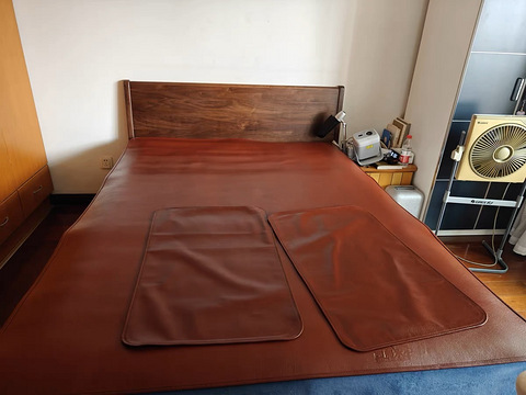 我老汉前几年买的牛皮凉席,这几天天热,我铺上用了。牛皮凉席价格真的巨贵,我爸妈之前用,生怕划伤了。就用了一个夏天,他两就扔给我用了,说让我“好好用”,别给用坏了。 看着很高大上,贵气十足。没想到开空调睡觉,挨着凉席的地方都会冒汗,还黏呼呼,一点都不透气。今早起来一点儿都忍不了,果断扯了!大家千万别买牛皮的,除了贵就是贵,实用性是一点都没