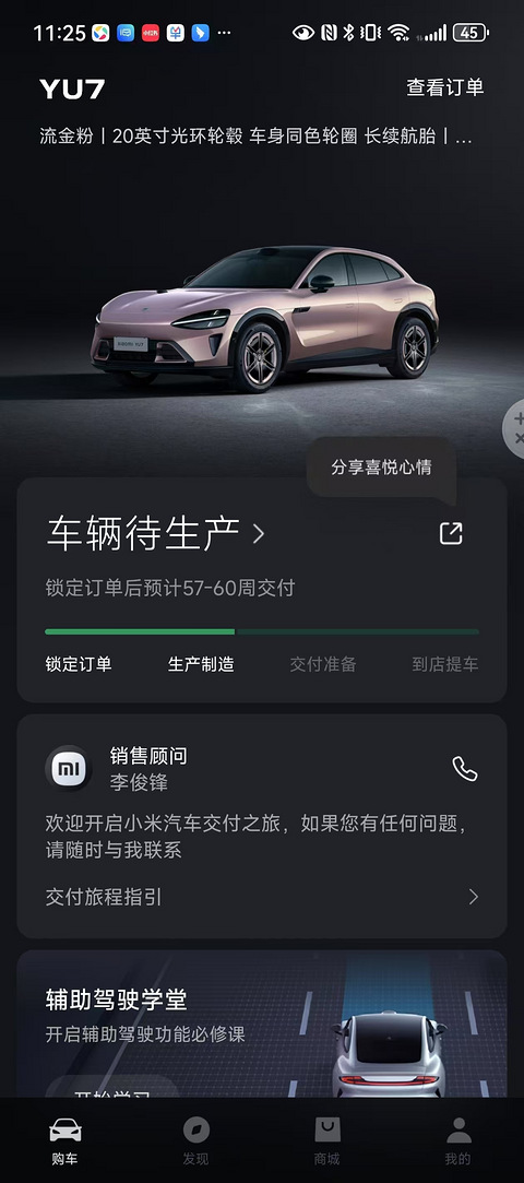 今天原本只是陪朋友打酱油般的看下YU7,结果我还比她早一个小时跳坑。 朋友要等60周,我要等37周