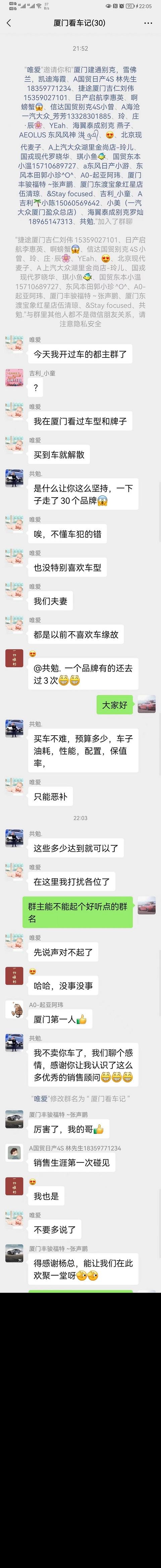 一个客户看了30多款车下不了决心,最后把所有销售拉了个群讨论