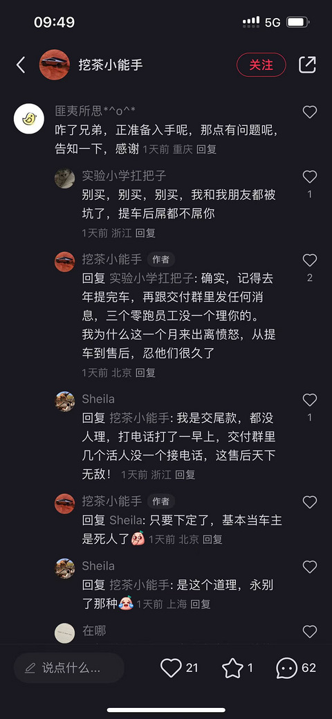 想换一台性价比高的电车,看了很多车,也试驾了一些,目前各方面还比较满意的有零跑C11,销售还给我C10快要上市了,采用了全新的技术,当我准备要下叉的时候,在小红书上看到有些车友评论,零跑小问题不断,买车前你是大爷,买车后没得人理你了,重庆这面可否有已买过零跑车的小伙伴,出来实地讲解一下这个车到底怎么样,有没有问题呢?烦请告知一下。 小红书评论小红书评论小红书评论C10展车C11展车