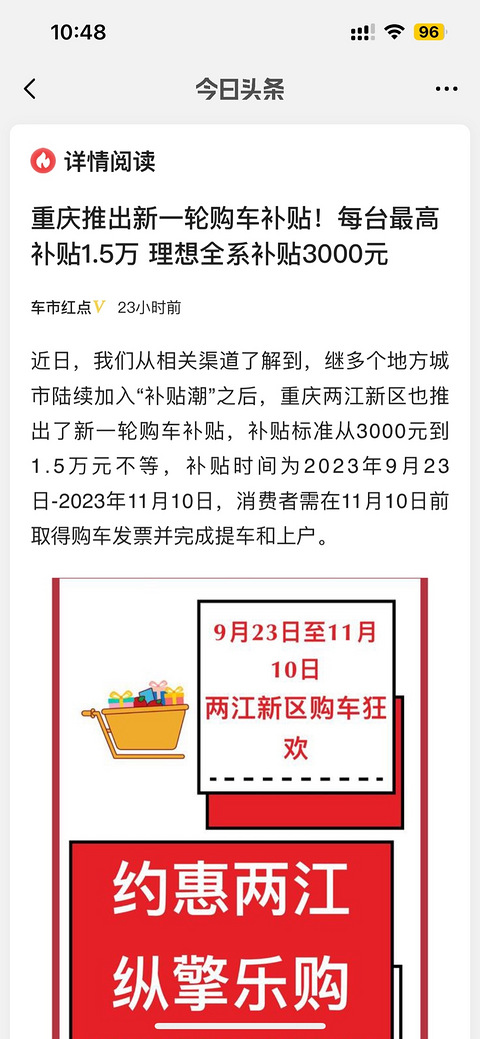 两江新区的补贴来了。