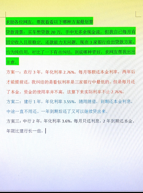 准备买车贷款,各位网友请帮我看一下哪种方式最划算