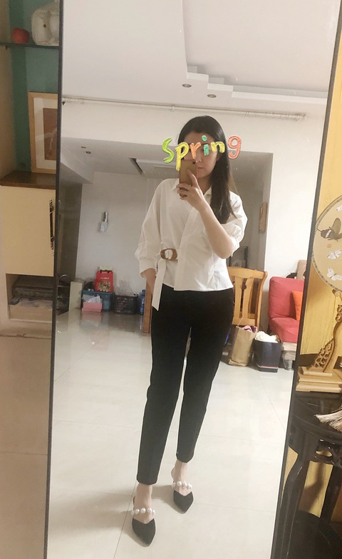 新入的收腰衬衫,配微喇弹力裤。裤子很舒服,不起皱。鞋子也是今天到的很好搭配。配了两条不同的裤型,一条微喇一条铅笔裤,铅笔裤是西裤样式,春秋厚度。