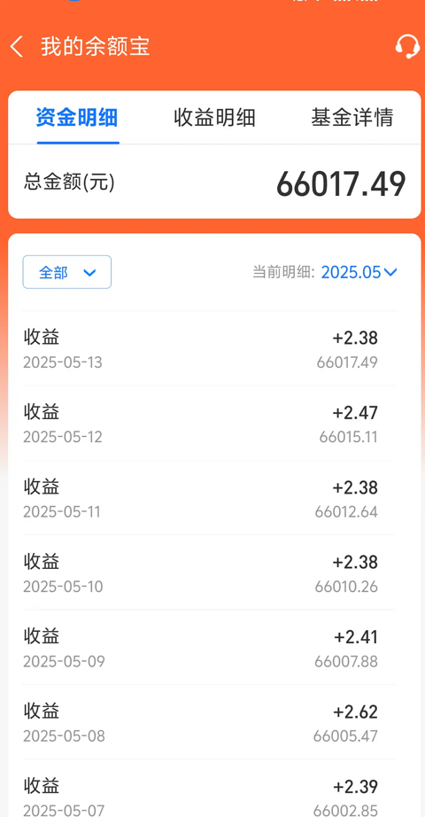 现在支付宝的收益真的好少啊,6.6w每天才2块多……
