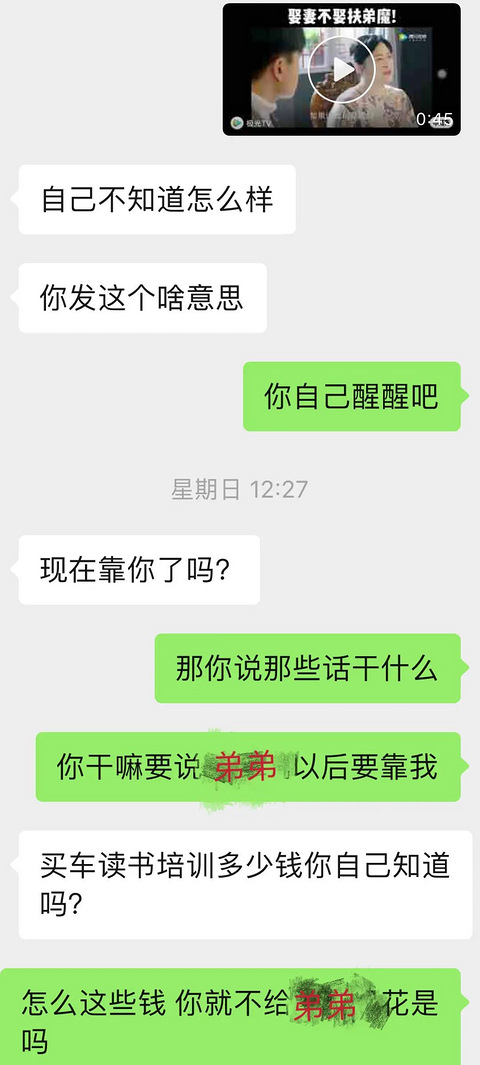 遇到这种情况,你会怎么面对……这是一个姐妹的经历哈 起因是中午吃饭的时候,我妈说找对象可不能找那些啃老的男的吧啦吧啦说一堆,我就说那你多考虑考虑我弟的问题吧。我妈直接来句我弟以后就靠你了啊,说我弟这么笨,等你以后有出息带带他。 我就一下子气起来了,我说你自己出去打听打听现在有多少相亲到都不愿意找姐弟家庭 就是因为你说的这些话!然后我就立马转发给她,就发生了以下对话。我语气好冲,可是也真的很难过。现