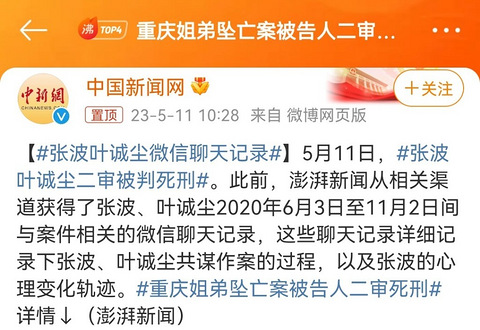 5月11日,重庆姐弟坠亡案,张波叶诚尘二审被判死刑,他们聊天记录出来了,真的无语。