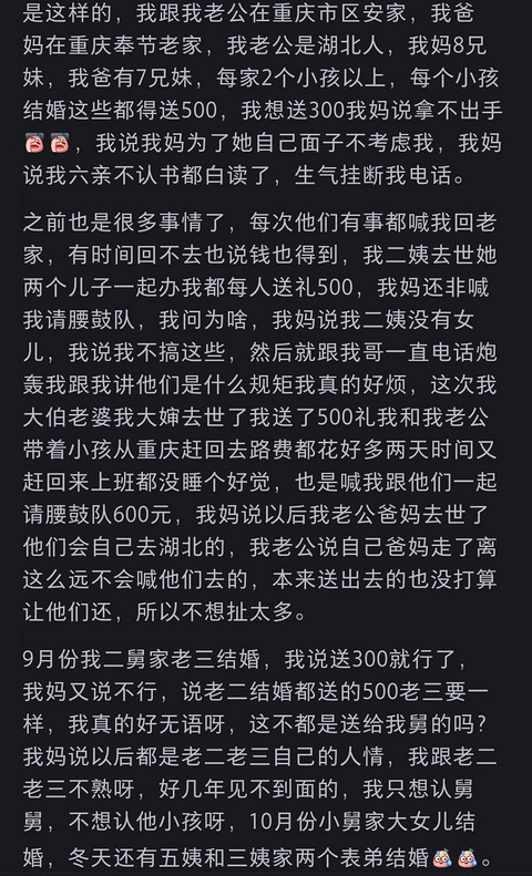 周末回家,跟婆子妈闲聊,他给我吐槽我老公哈耿直,她跟他吵了一架后几天没跟他说话了。原因是上周热,老公带着婆子妈,两个孩子去避暑,再加一个他童年结拜兄弟伙的女儿(下面简称侄女嘛),我上班忙没去。本来计划是去玩6,7天的结果4天就回来了。 这个侄女今年刚高考完,成绩300多,民办大专,跟我家大女年纪相差不大,这次出行,因为她的加入多开一间房,而且好吃懒做,自己衣服都是我婆子妈给她洗,就连