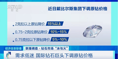 自从去年以来,全球原钻价格不断下滑,近日,全球原钻价格指数更是创下了52周以来的最低值。 就连戴比尔斯这样的百年钻石巨头,也受到巨大冲击,不得不打出了“降价牌”。据《央视财经》报道,今年在首次看货会中,戴比尔斯将原钻价格下调了约10%,而且对“大钻石”进行了更大幅度的降价,2克拉以上的原钻降价幅度在15%以上。不是说好的“钻石恒久远,一颗永流传”吗?怎么还搞起了“降价大促销”呢?其实说起来,戴比尔