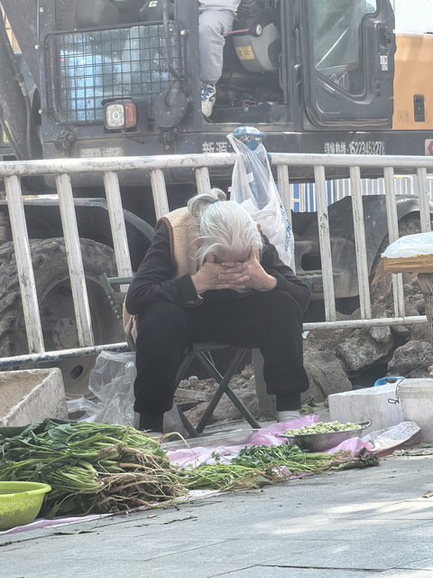 在城市施工的轰鸣声里,撞见了最让人心酸又敬佩的一幕。白发老人守着自己的小菜摊,在喧嚣的街头,悄悄掩面,揉着满脸的疲惫。我们总在抱怨生活太难,可总有人,把艰难的日子,过成了手里新鲜的青菜,带着泥土的温度,踏实又坚韧。挖掘机在拆旧、建新,城市在飞速迭代,可不变的,是普通人对生活的韧劲。没有谁的生活是容易的。有人在写字楼里熬大夜改方案,有人在太阳底下守小摊等顾客;有人为了KPI焦虑到失眠,有人为了几毛钱