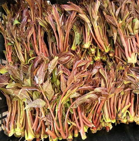 椿芽,也叫香椿,一年只有这个时段才能吃到。一听这名字就带有一种美感,犹如18岁的姑娘。未烹饪前,初闻,略带一种臭味,但是不难闻。经过焯水,切碎,将正宗的鹅蛋与之混合搅匀,再加入姜蒜末,花椒粉,盐少许。然后把菜籽油烧至7成热,加入混合好的椿芽,经过九九八十一次翻炒,起锅。再配上一碗古月龙山,椿芽的香味,再加上黄酒的浑厚味道,绝了。用康有为的一首诗收尾,山珍梗肥身无花,叶娇枝嫩多杈芽。长春不老汉王愿,