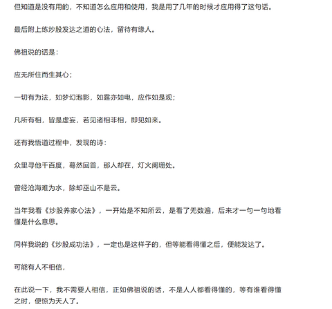 我不会去看他的东西,但觉得今天在公众号上写的比较认同!炒股炒的是人性,人心