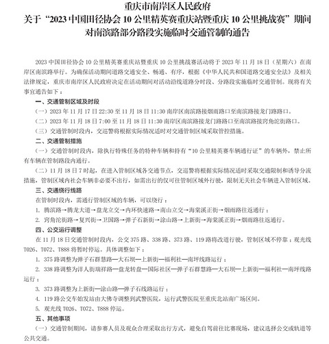 11月18日上午南滨路部分路段交通管制