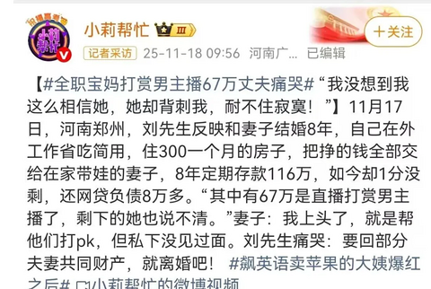 美女花光116万打赏男主播仅剩3毛!丈夫痛哭全网却都在骂他…