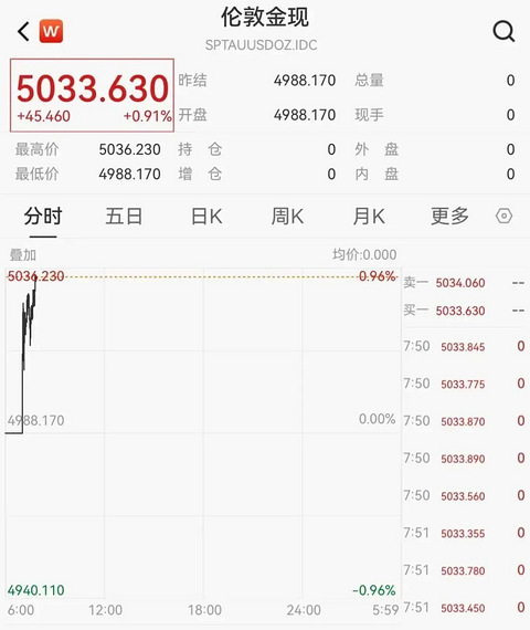 今天一睁眼,黄金、白银又双叒叕创历史新高了。 周一早上,金价直接涨到5030美元,再创历史新高。 截至发稿,现货黄金报5033.63美元/盎司,日涨幅达0.91%。