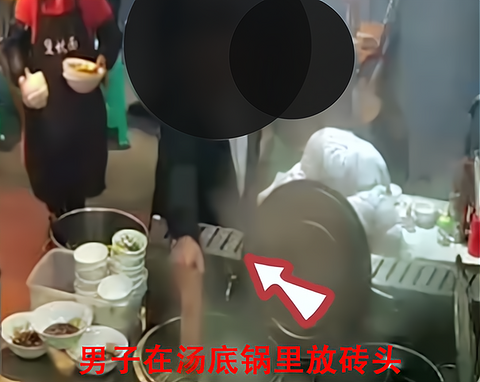 重庆一男子嫉妒面馆老板的生意好,把砖头扔进汤底锅里
