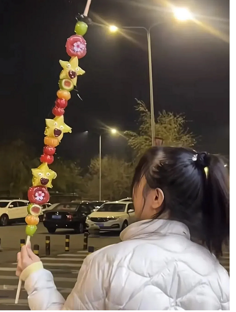 最近,全网铺天盖地都被“一米糖葫芦”给刷屏了。 在一根快一米长的竹签子上,穿上橘子、草莓、青提、杨桃等好看的水果,裹上冰糖。