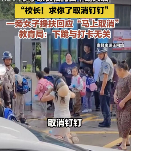 现在的家长,过得真是不容易。 既要当爹妈,又要当孙子。 前不久,浙江一小学门口发生了一件无比心酸的事。 一位妈妈,跪在学校门口,声嘶力竭疑似哭喊着:求求校长,取消钉钉打卡!