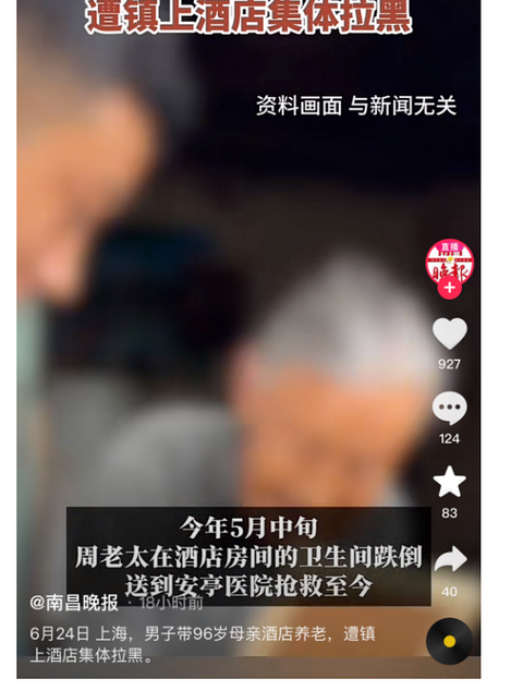 昨天,热搜上的一个新闻非常有意思。 上海男子周先生,今年69岁,已经踏入古稀之年的他,还有一个96岁高龄的老母亲。 这个母亲双目失明,周先生每日照顾她的饮食起居,是个不折不扣的“大孝子”。 他们租住在上海的某酒店里,今年5月,周先生母亲跌倒后住院,结果,酒店竟然趁这个时候,不让周先生和他母亲住了! 甚至,连周边的酒店都受到这家酒店的影响,集体“拉黑”他们,不给周先生母子入住!