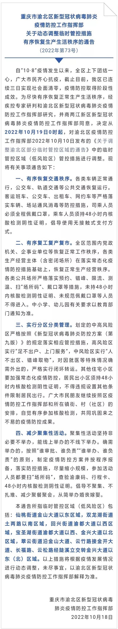 渝北多地风险等级调整,江北、两江新区这类场所恢复经营