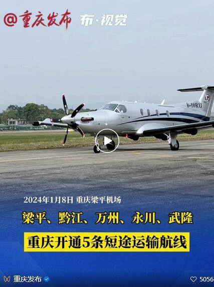 今(8)日 随着一架梁平机场起飞的 皮拉图斯PC-12飞机降落黔江机场 标志着重庆短途运输航线完成首航 本次开通的重庆地区 首批短途运输航线共计5条 具体如下↓↓ 梁平=黔江 黔江=万州 黔江=永川 梁平=武隆 永川=武隆