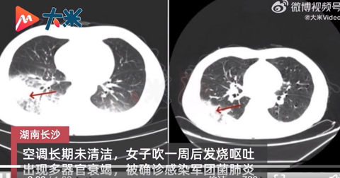 湖南长沙,32岁女子因为空调长期未清洁,吹一周后出现了发烧、呕吐、腹泻等症状,检查发现多器官衰竭,被确诊感染重症军团菌肺炎。经过半个月的治疗,女子症状明显好转。呼吸与危重症医学科副主任医师刘达说,夏天是军团菌肺炎高峰期,要及时对空调滤片和泳池进行清洗。