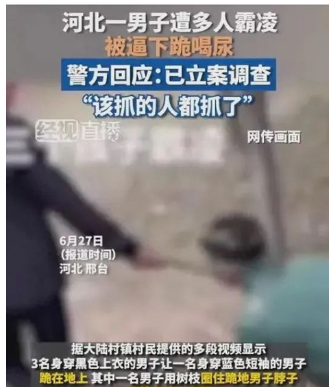 6月27日(发布),河北宁晋县,一则“男子被多人霸凌”的视频点燃了大家的愤怒之情,网友们纷纷表示谴责。