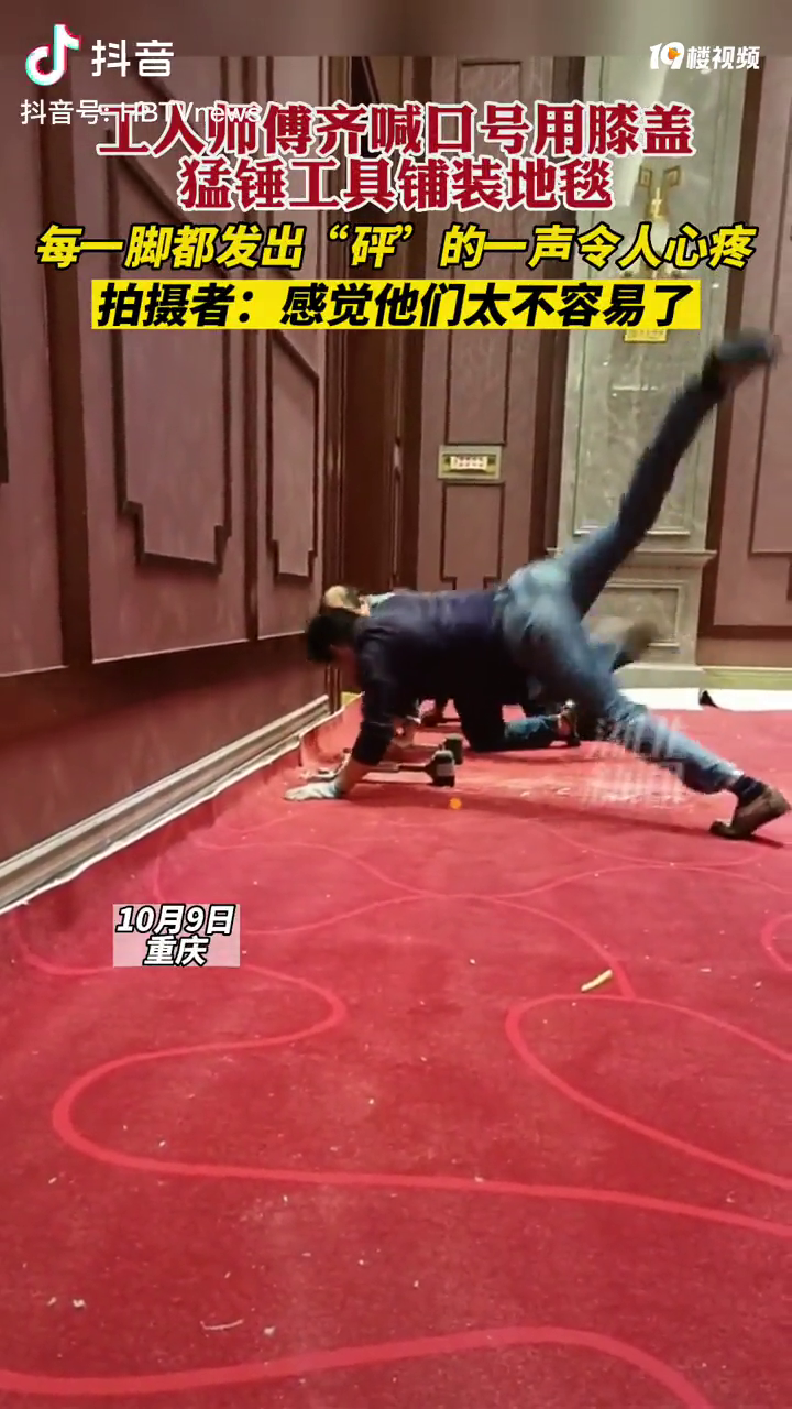 最近,重庆几位工人师傅跪地用膝盖锤打工具,以达到铺平拉紧的目的,现场不断传出砰砰的撞击声。很多网友心疼这种工作方式,觉得对膝盖损伤很大。 对此,几位业内人士解释称,视频中的工具是地毯小撑,它是整铺地毯时必不可少的工具,底座有很厚的减震棉。小撑方便灵活、能控制方向、调节力度,是工人们的首选。 膝盖受伤算是这一行的职业病,新手会疼,经验丰富的老师傅没什么感觉。辛苦的工作让很多圈外的年轻人望而却步,有地