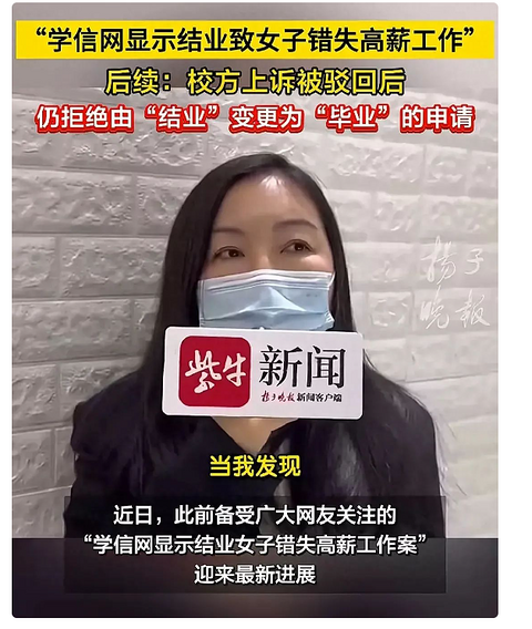 女子因学信网结业错失高薪工作!学校:当年就没毕业何来毕业证?