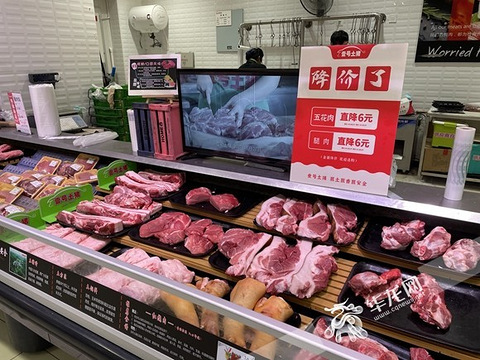 重庆猪肉又双叒叕降价了。(资料图) 华龙网-新重庆客户端6月17日20时55分讯(记者 周晓雪)据农业农村部此前发布的数据显示,6月份第一周,全国猪肉价格每公斤29.45元,连续19周下降。来自重庆市商务委的数据显示,上周重庆白条猪批发价已跌破10元/斤,周环比跌6.62%。
