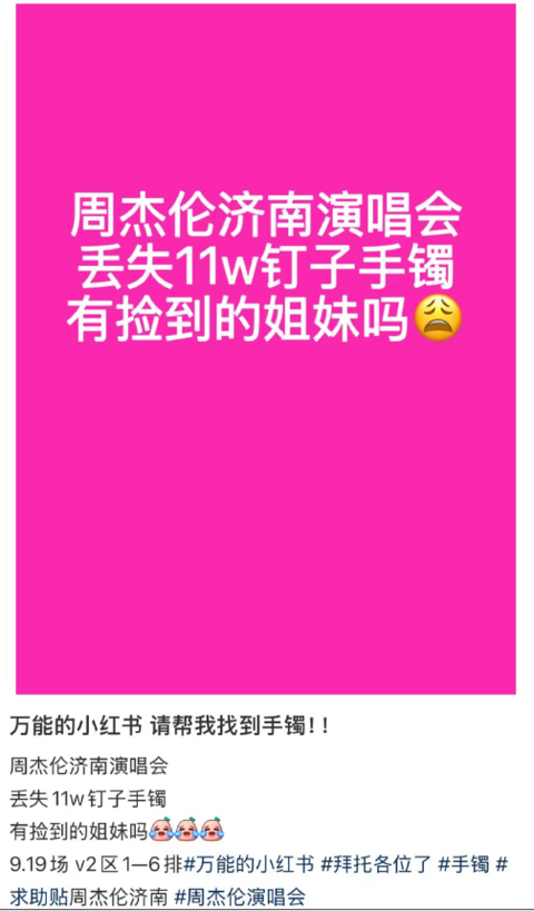 女子在周杰伦济南演唱会丢失11万手镯,杭州网友:被我捡到