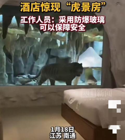 江苏一酒店惊现虎景房,可隔着玻璃看老虎走来走去。