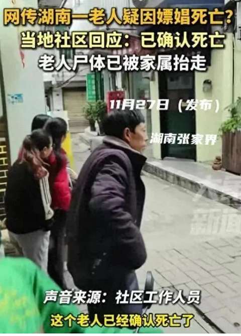 近日有网友发布视频称湖南张家界永定区宏仁医院附近有老人疑似因嫖娼死亡