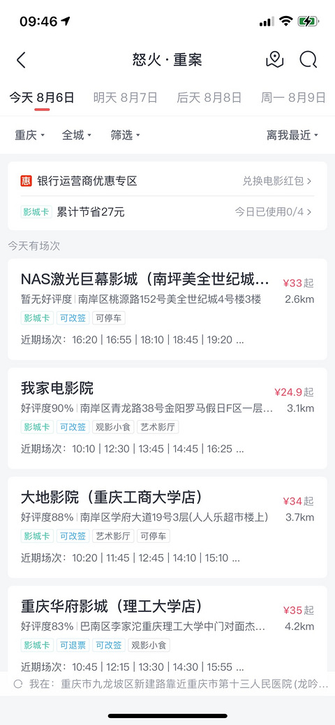 淘票票上没有九龙坡区,看来电影院要关闭了,电影也无法看了[ej=1F602]