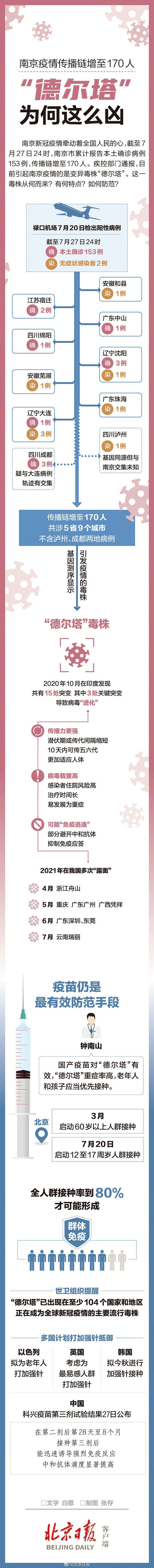 南京疫情传播链增至170人,一图看懂德尔塔毒株为何这么凶。