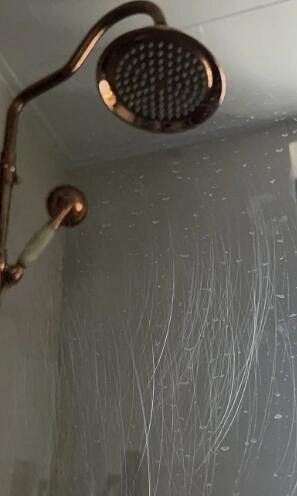 好好的玻璃,突然想来个彻底打扫一下。醋加洗洁精,然后百洁布的绿色面擦拭。哦豁!!